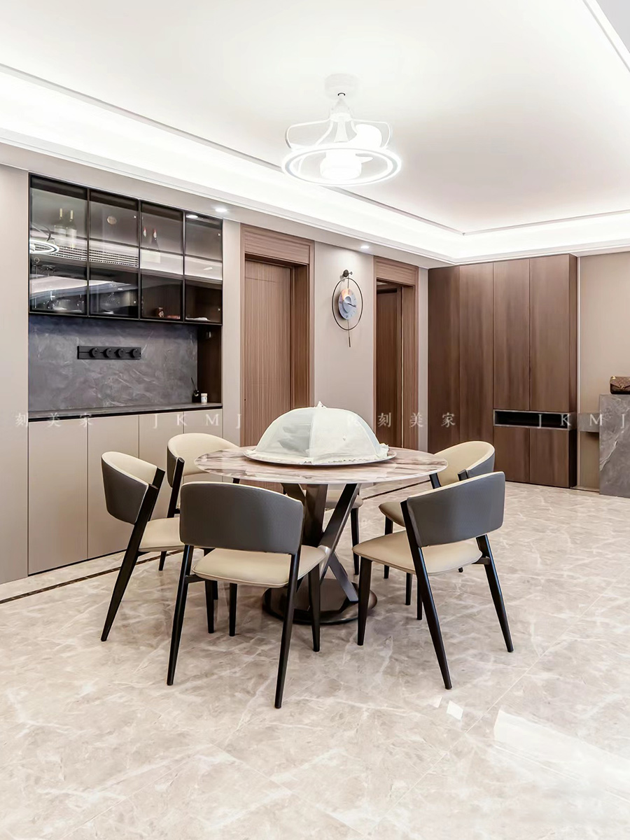 整體用煙熏尤加利為主色調(diào),全屋同款同色同造型,打造意式簡約的氛圍感