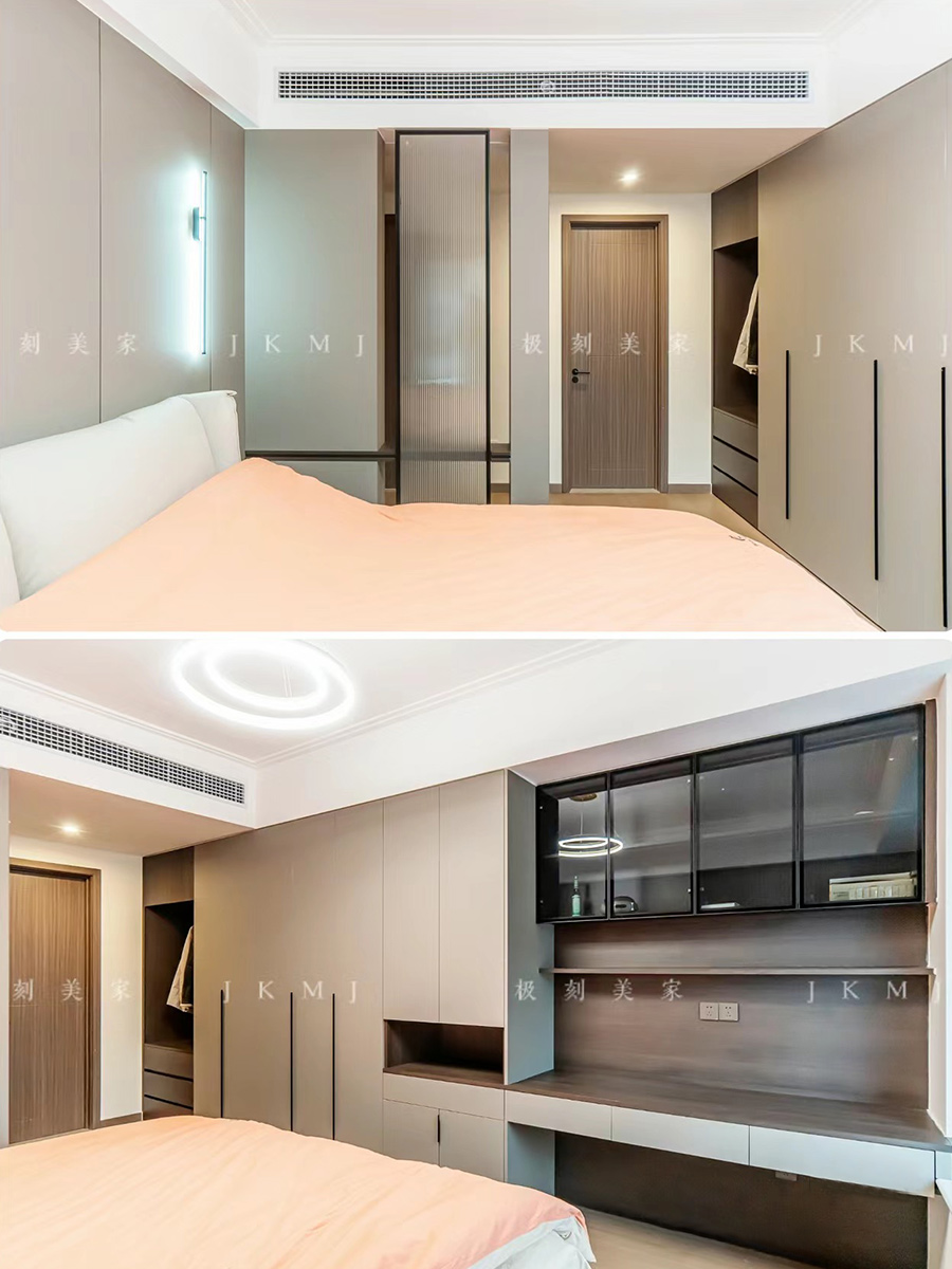 全屋高端定制:柜體板材18厚杉木實芯板,柜門有pet膚感、高光、超晶,五金使用原裝進(jìn)口奧地利百隆五金