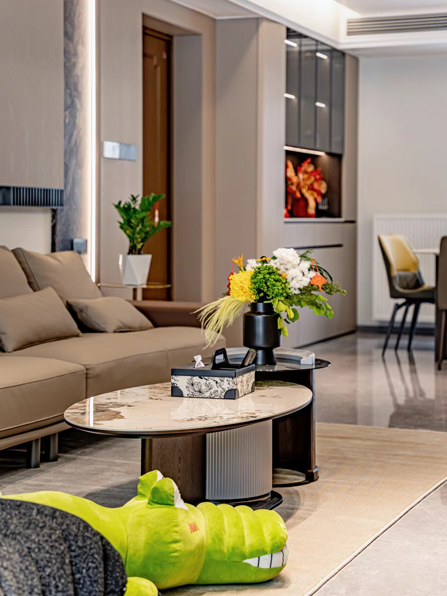 客餐廳一體式設(shè)計(jì),搭配輕奢感裝飾更好的營造家庭氛圍感