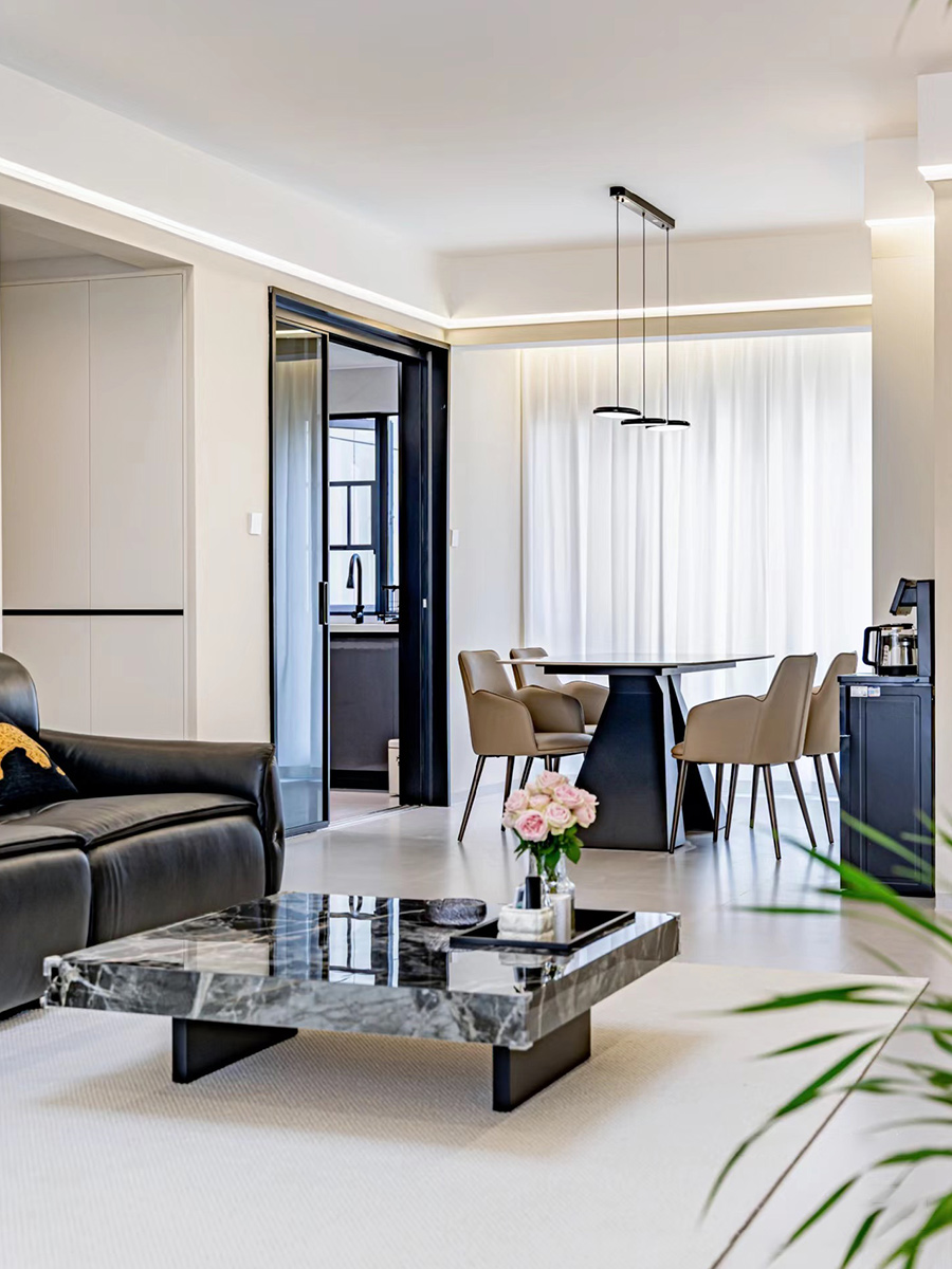 空間里沒有任何的造型過度裝飾,簡單干凈白墻,局部深色調(diào)點綴,高級感中又增加了氛圍感