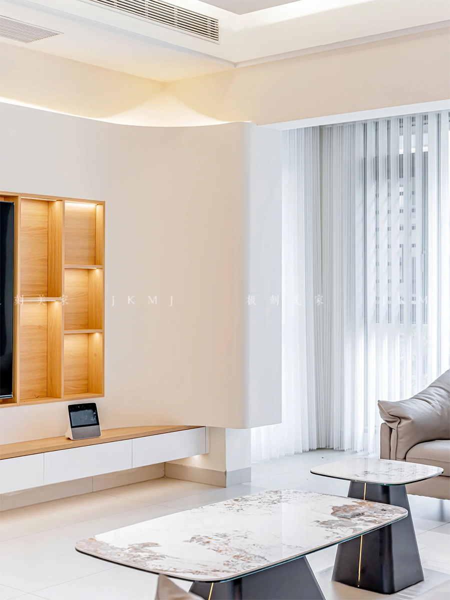 無(wú)主燈設(shè)計(jì),整體空間更顯大,搭配燈帶和筒燈,氛圍感十足