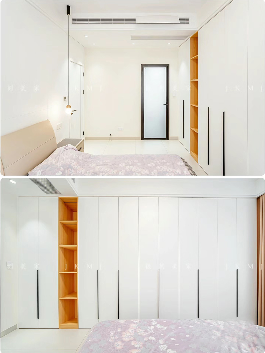 全屋高端定制:柜體萬(wàn)象18厚杉木實(shí)芯板,柜門新西蘭進(jìn)口歐松板,有pet膚感、高光、超晶,五金使用原裝進(jìn)口奧地利百隆一字底鉸鏈