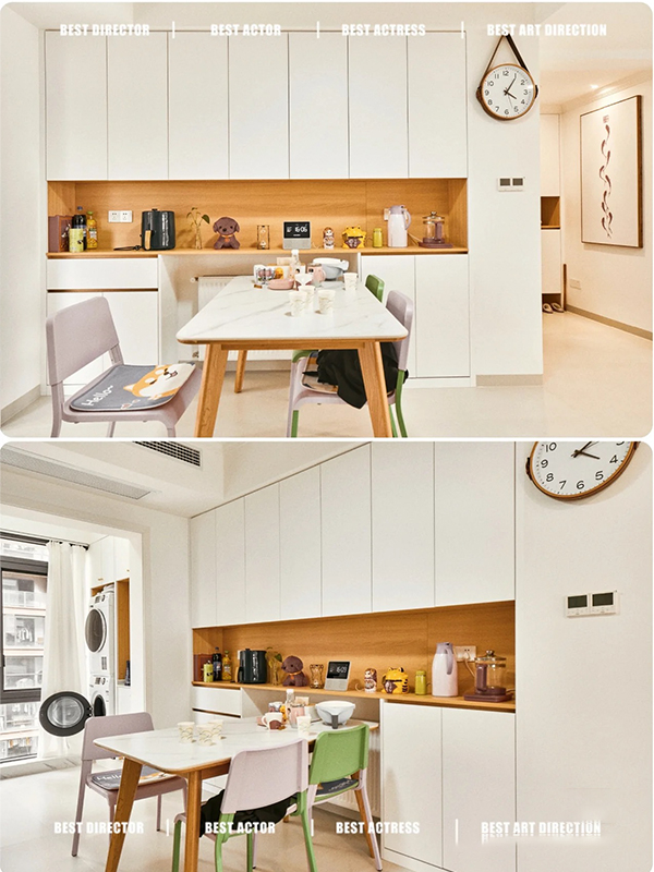 全房共定制了8個柜子,柜體采用足18厚杉木芯板,柜門采用LSB板PET膚感柜門,一門到頂,五金使用原裝進口的百隆五金