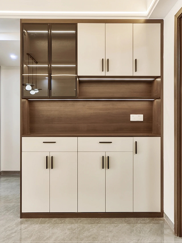?部分柜子搭配燈帶+玻璃門,減少整體的厚重感,更顯時尚