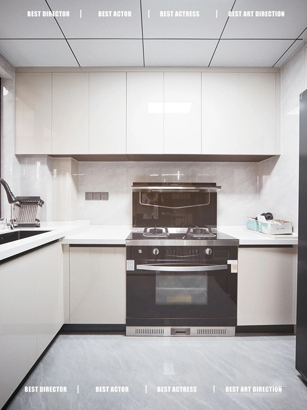 全房共定制了10個柜子,柜體采用足18厚杉木芯板,柜門采用LSB板PET膚感柜門,一門到頂,五金使用原裝進(jìn)口的百隆五金