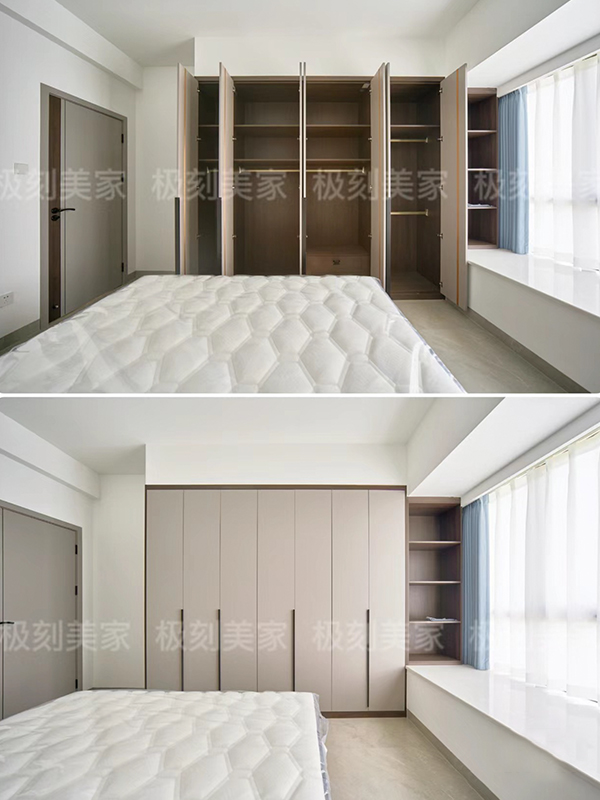 全屋高端定制:柜體18厚杉木實(shí)芯板,柜門pet膚感、五金使用原裝進(jìn)口奧地利百隆五金
