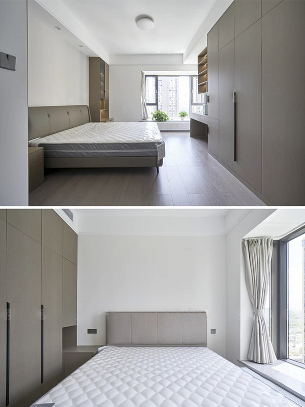 臥室小的話建議將衣柜?床頭柜一體式設計,不會擋柜門。