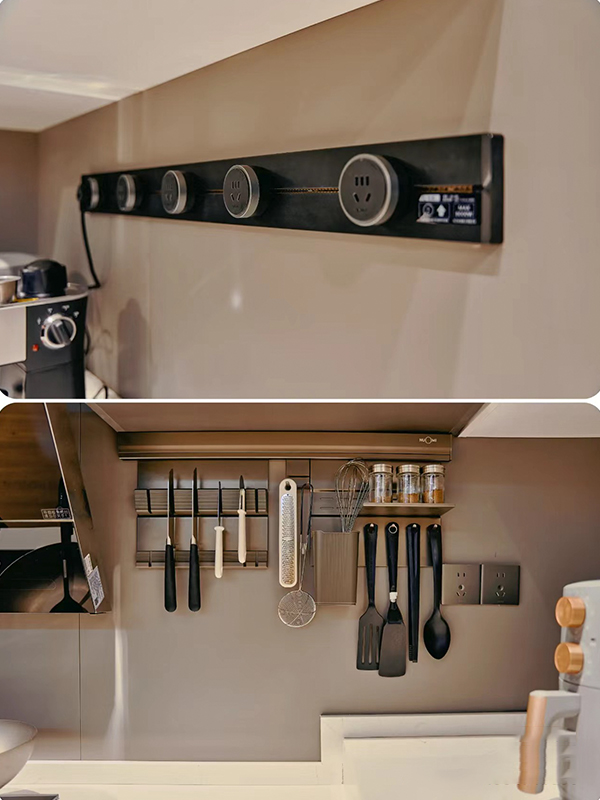 廚房小家電越來越多,特給廚房配置移動軌道插座,解決日常插座不夠的現(xiàn)象。