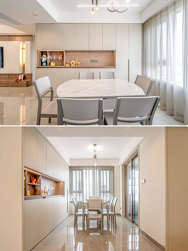 全屋高端定制:柜體板材18厚杉木實芯板,柜門有pet膚感、高光、超晶、五金使用原裝進口奧地利百隆五金