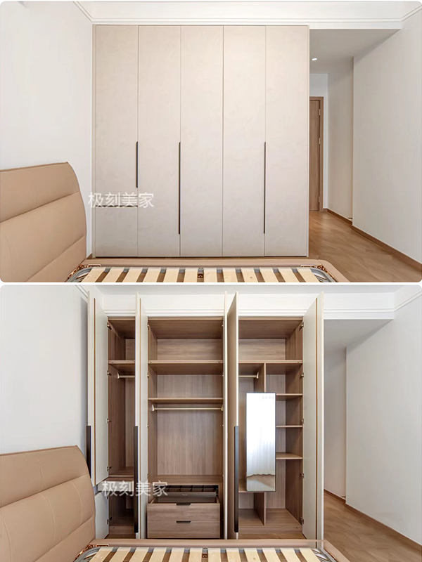 全屋高端定制:柜體板材18厚杉木實(shí)芯板,柜門有pet膚感、高光、超晶、五金使用原裝進(jìn)口奧地利百隆五金