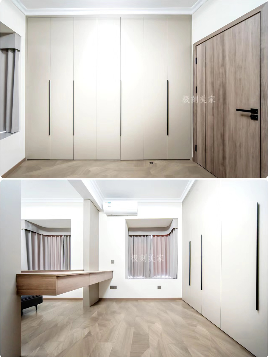 全屋高端定制:柜體板材18厚杉木實(shí)芯板,柜門有pet膚感、高光、超晶、五金使用原裝進(jìn)口奧地利百隆五金