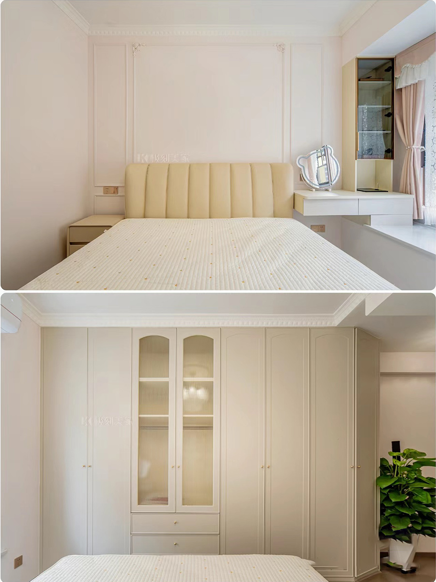 臥室延續(xù)法式PU線條與角花,斜角柜的設(shè)計(jì),更添氛圍感