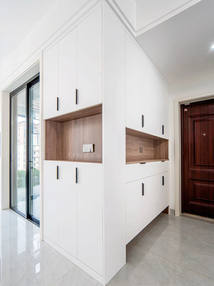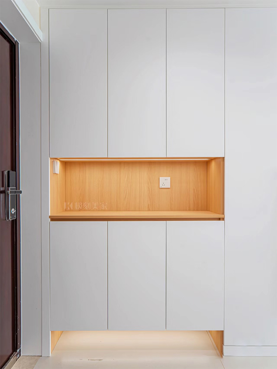鞋柜中部和底部留空或穿插設(shè)計(jì),增添呼吸空間