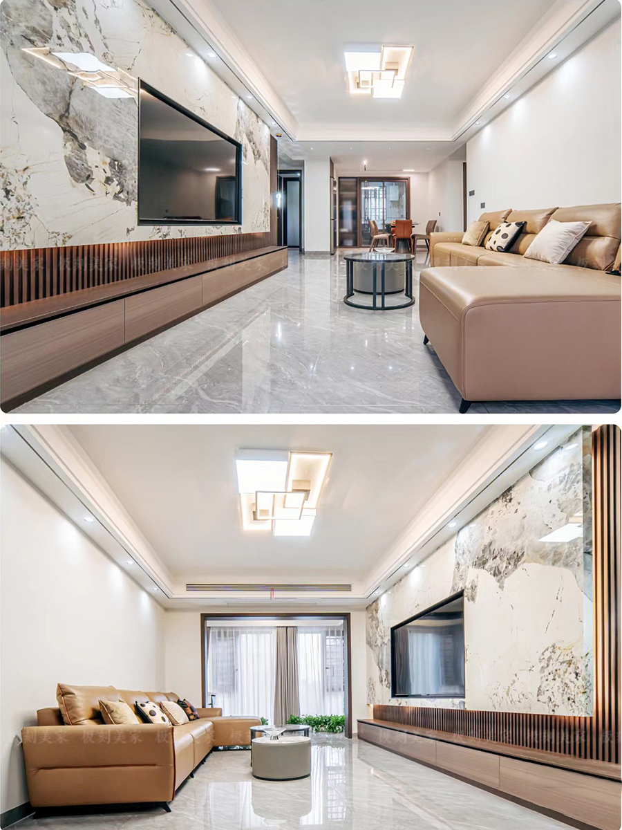 雙眼皮吊頂與無(wú)主燈設(shè)計(jì)搭配,空間更顯開(kāi)闊