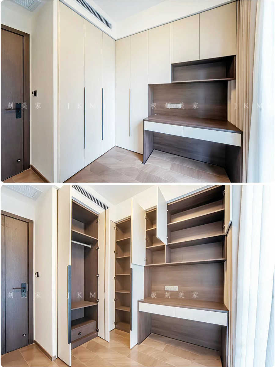 全屋高端定制:柜體板材18厚杉木實芯板,柜門有pet膚感、高光、超晶、五金使用原裝進口奧地利百隆五金