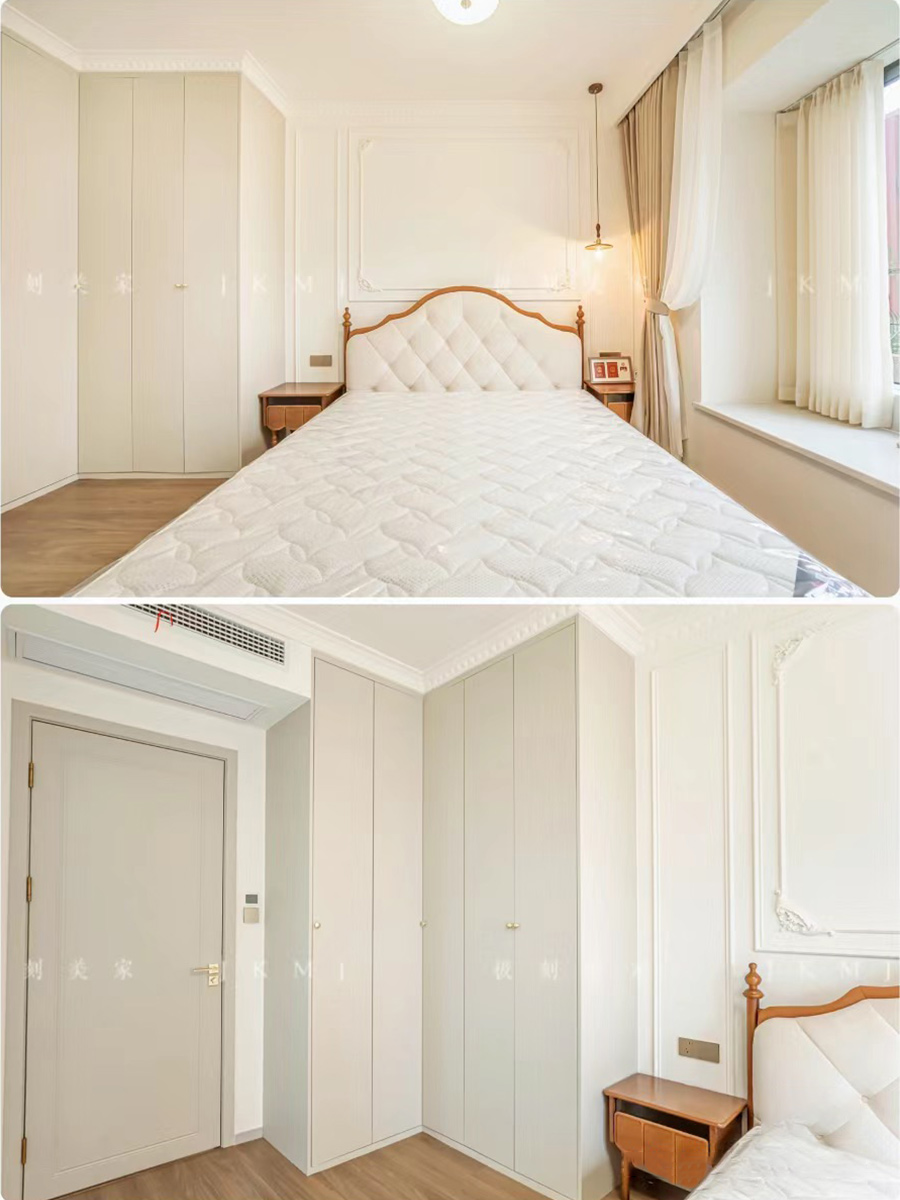 整體定制采用象牙灰加同色系柜門(mén),搭配圓柄金屬拉手,增加了法式的優(yōu)雅