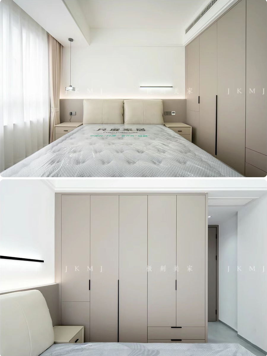 全屋高端定制:柜體板材18厚杉木實(shí)芯板,柜門有pet膚感、高光、超晶、五金使用原裝進(jìn)口奧地利百隆五金