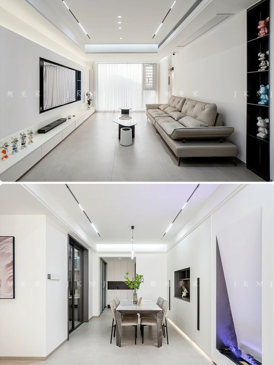 無主燈搭配雙眼皮吊頂設(shè)計(jì),推掉陽(yáng)臺(tái)做一體化設(shè)計(jì),顯大又高級(jí)