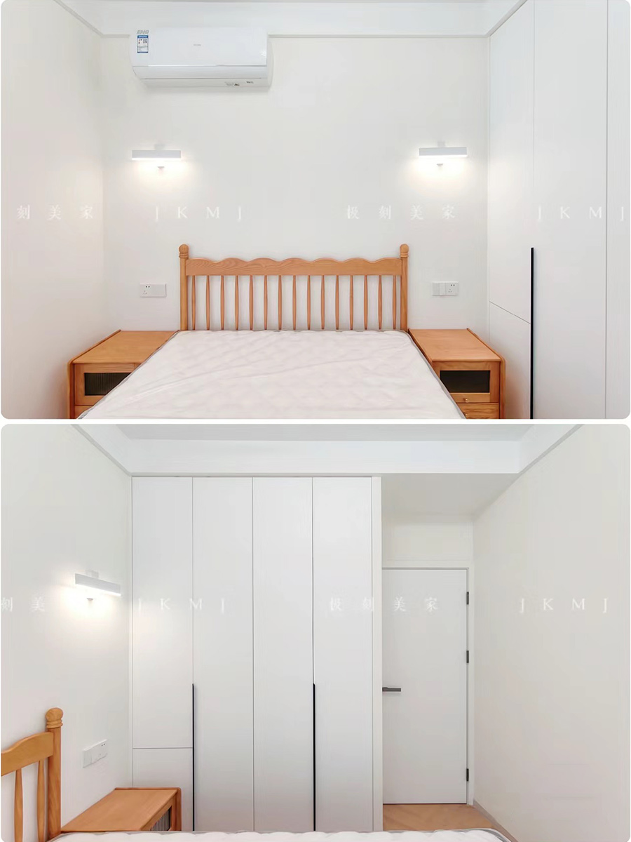 臥室柜延用整體搭配,運(yùn)用琥珀白做柜門,全屋同款同色同造型