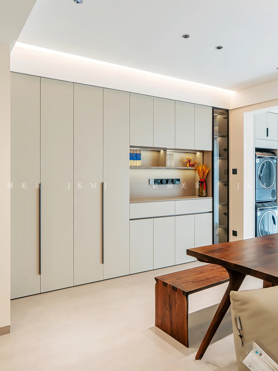 全屋高端定制:柜體板材18厚杉木實芯板,柜門有pet膚感、高光、超晶,五金使用原裝進口奧地利百隆五金