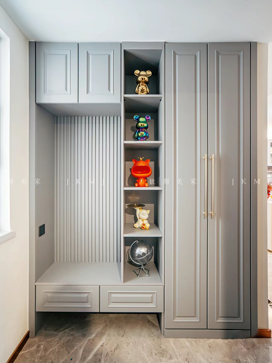 全屋高端定制:柜體板材18厚杉木實芯板,柜門有pet膚感、高光、超晶,五金使用原裝進口奧地利百隆五金