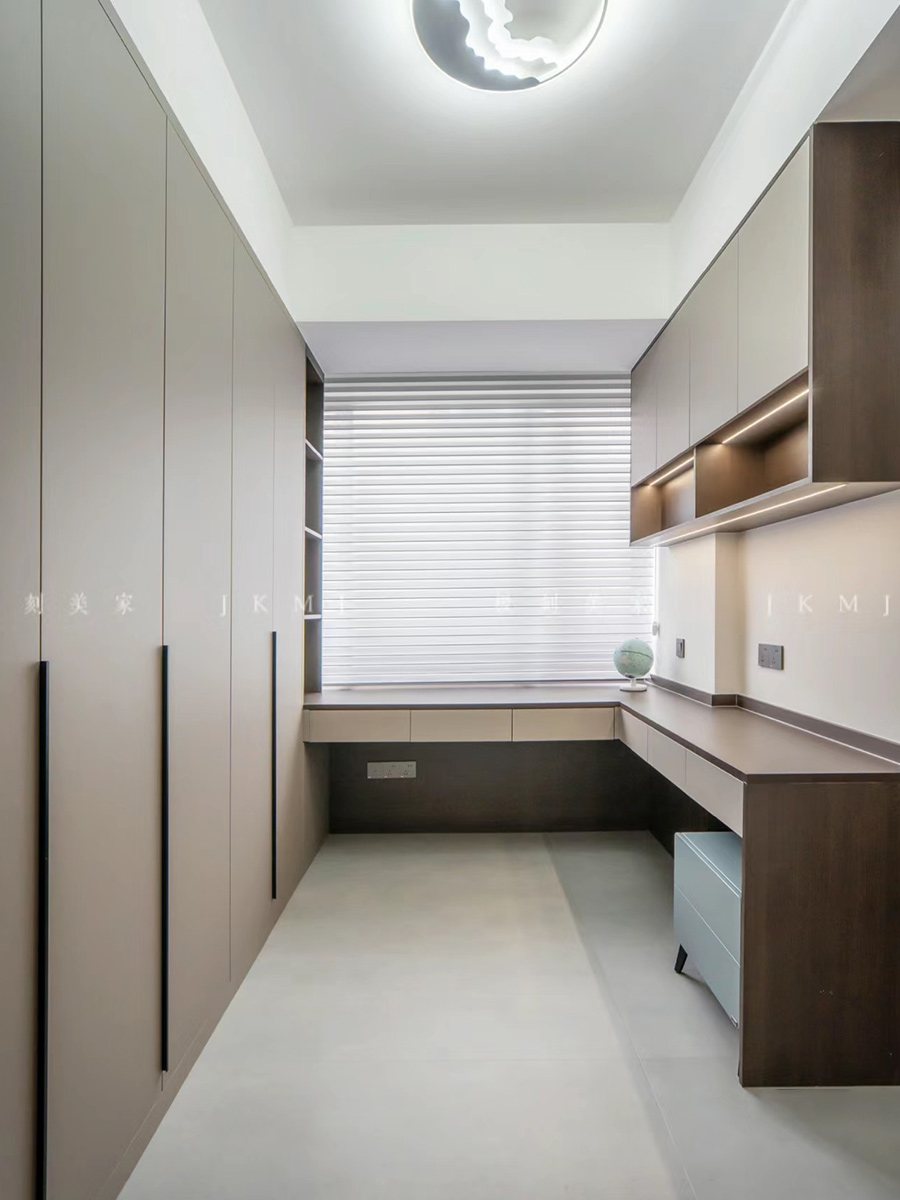 書房做U型衣柜書桌一體化設(shè)計(jì),極大的利用收納空間