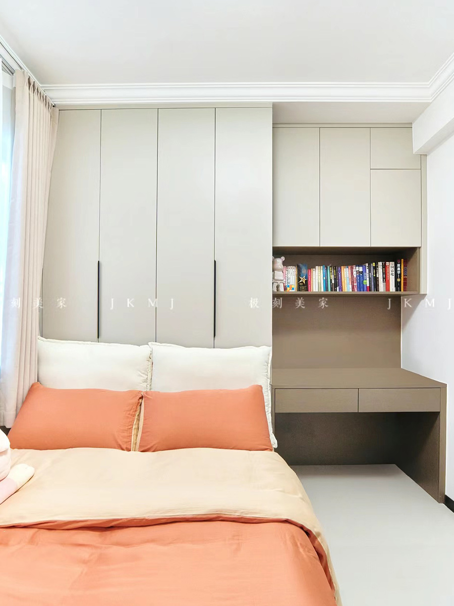 主臥書柜都做了衣柜書桌一體化設(shè)計(jì),更適宜學(xué)習(xí)和辦公