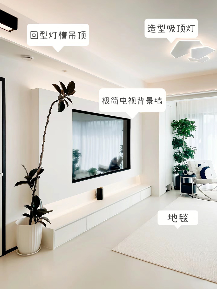 ??客廳門(mén)做極窄邊框門(mén),與墻面融為一體,降低墻體帶來(lái)的突兀感