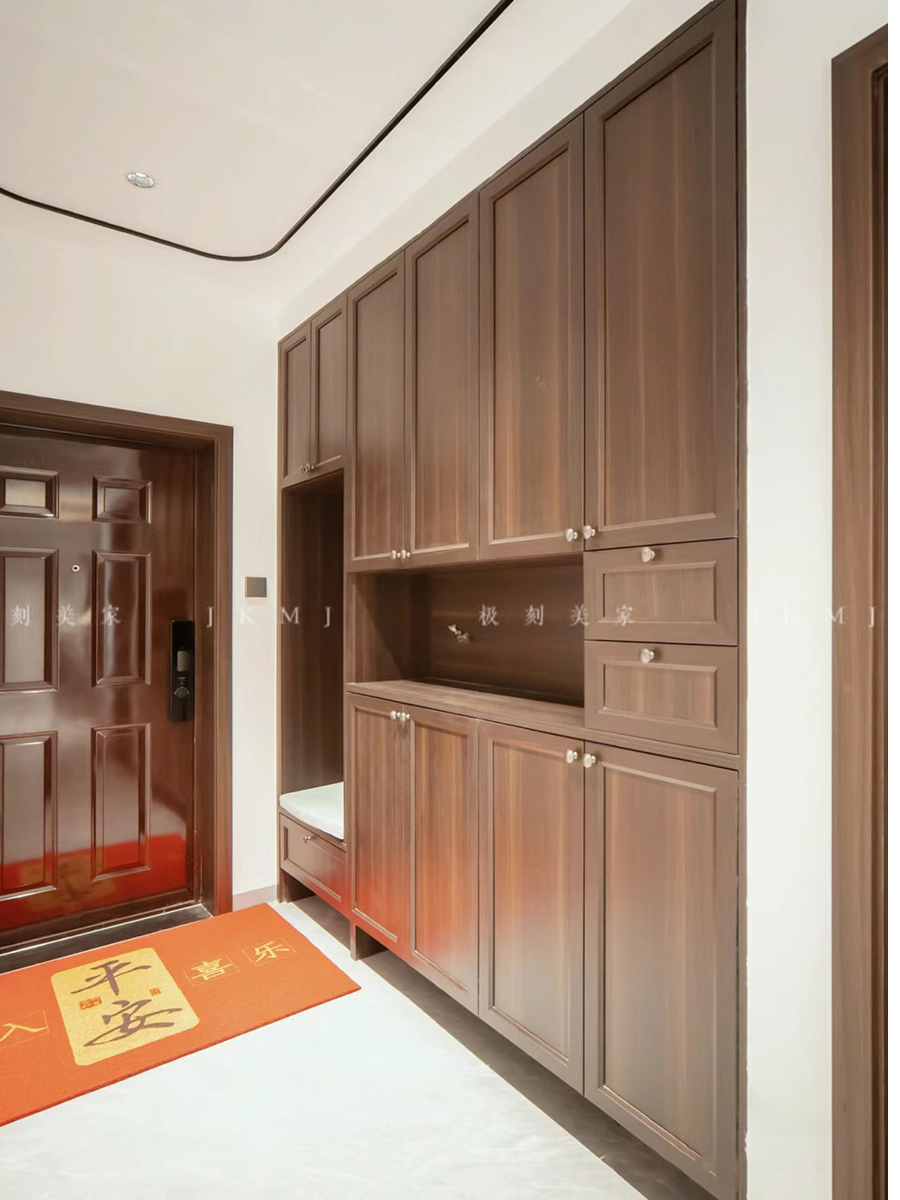 柜體采用煙熏橡木加造型的設(shè)計,全屋同款同色同造型設(shè)計,整體統(tǒng)一