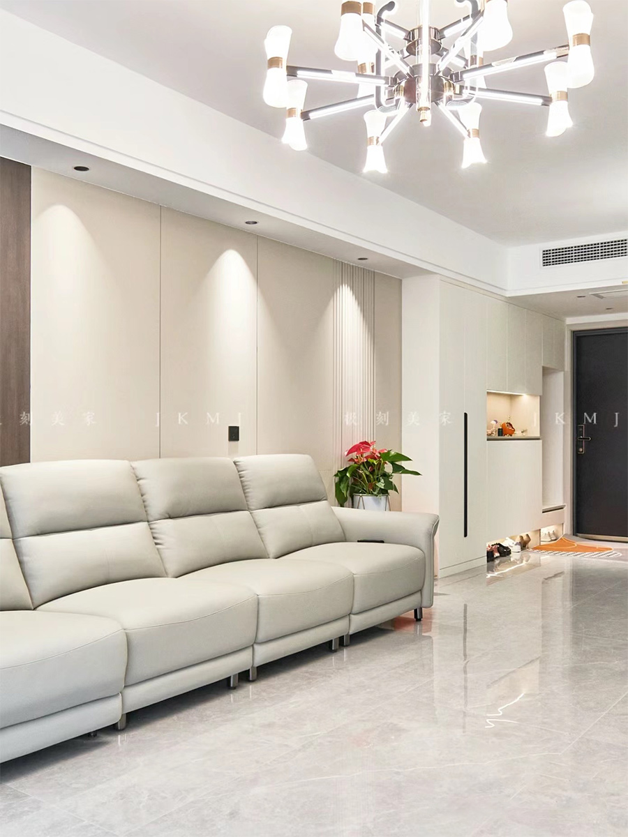 一字型懸浮電視柜和沙發(fā)背景墻搭配,簡單又高級