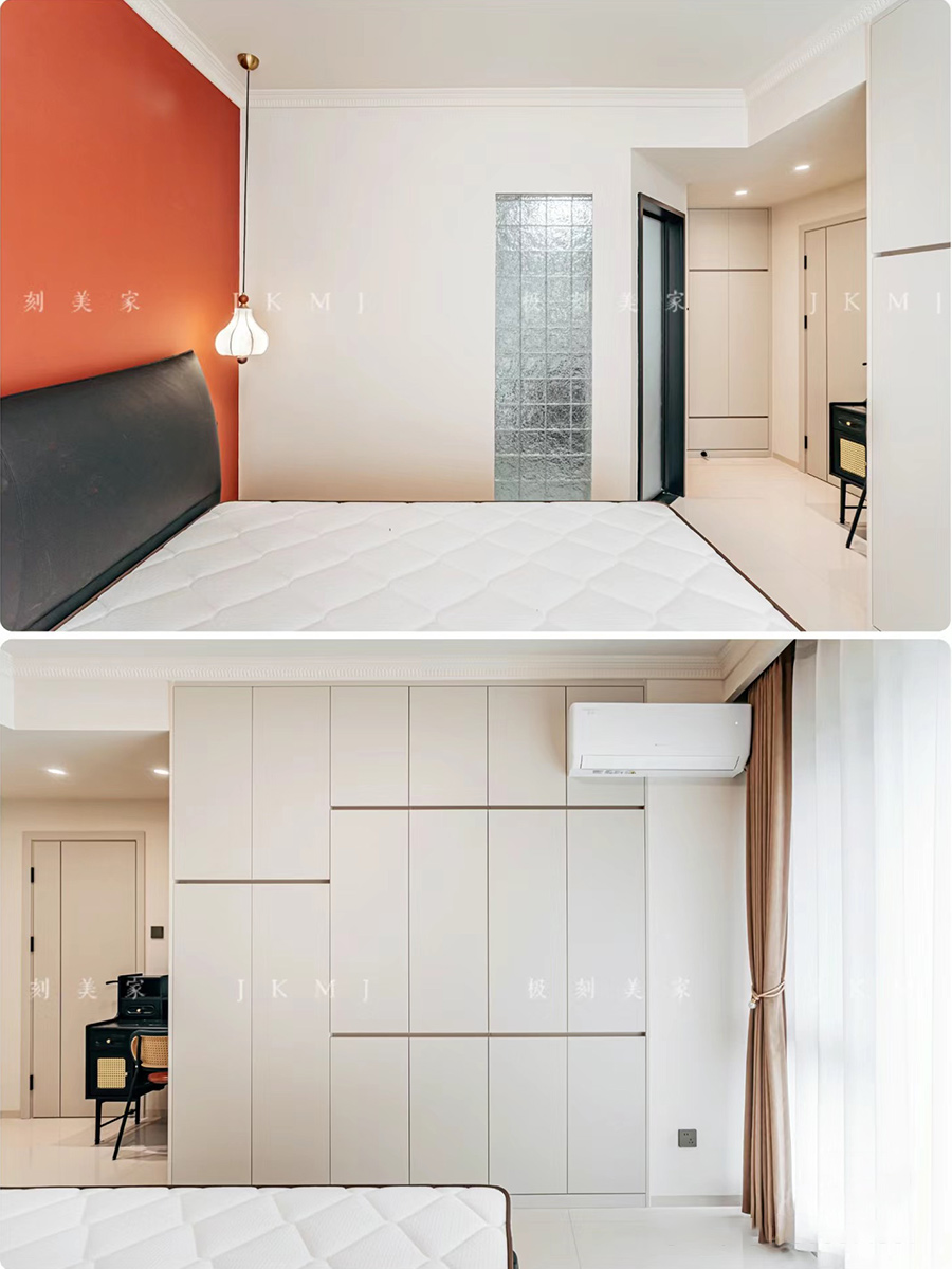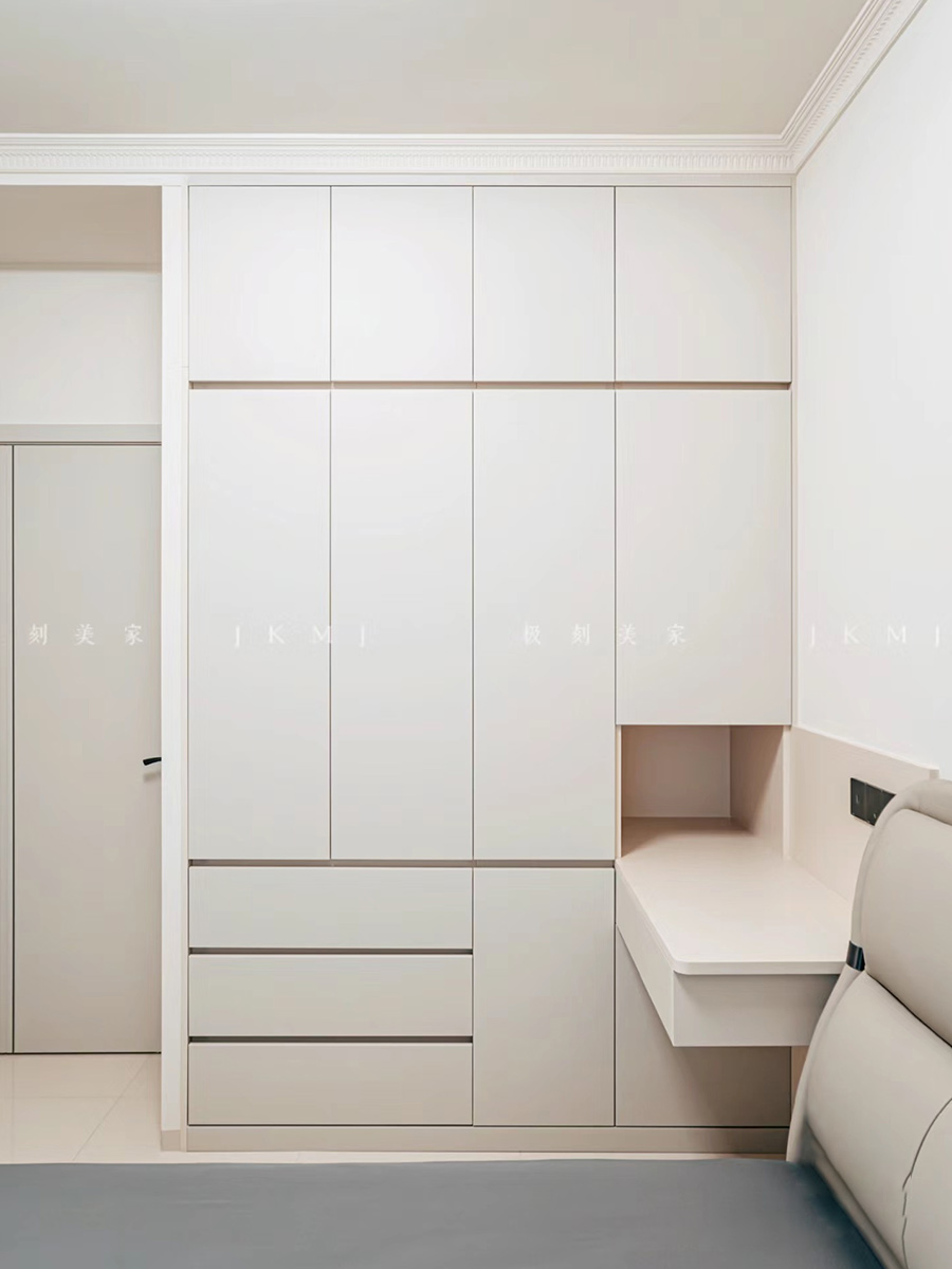 臥室柜做分段式無(wú)拉手設(shè)計(jì),省去拉直器的費(fèi)用,簡(jiǎn)單又好看