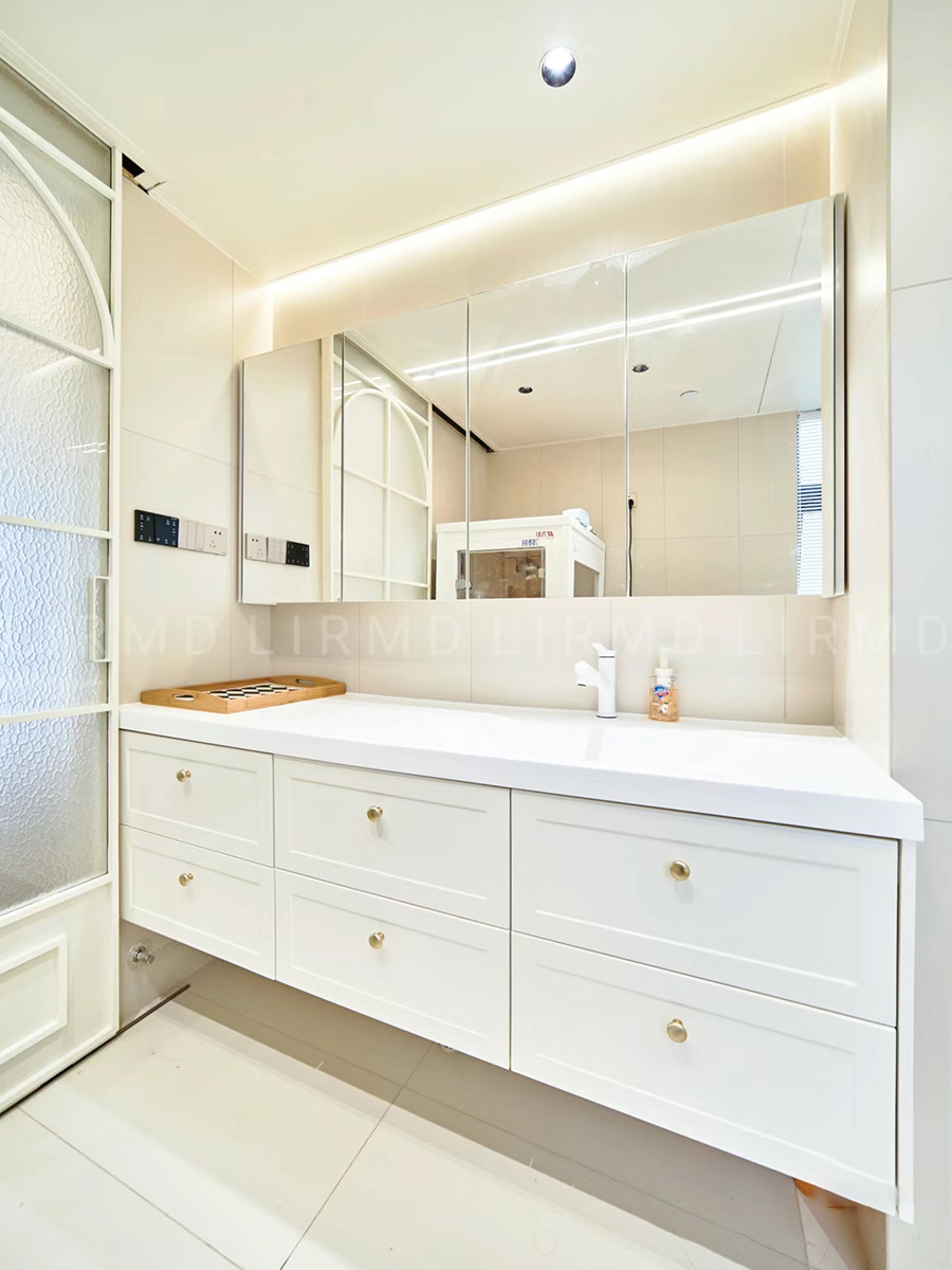 瀚江府160平法式復(fù)古精裝全改+整家定制只需61800元即可搞定。天使白實(shí)木柜體搭配珍珠白的造型門,讓全屋的顏值更上一層。