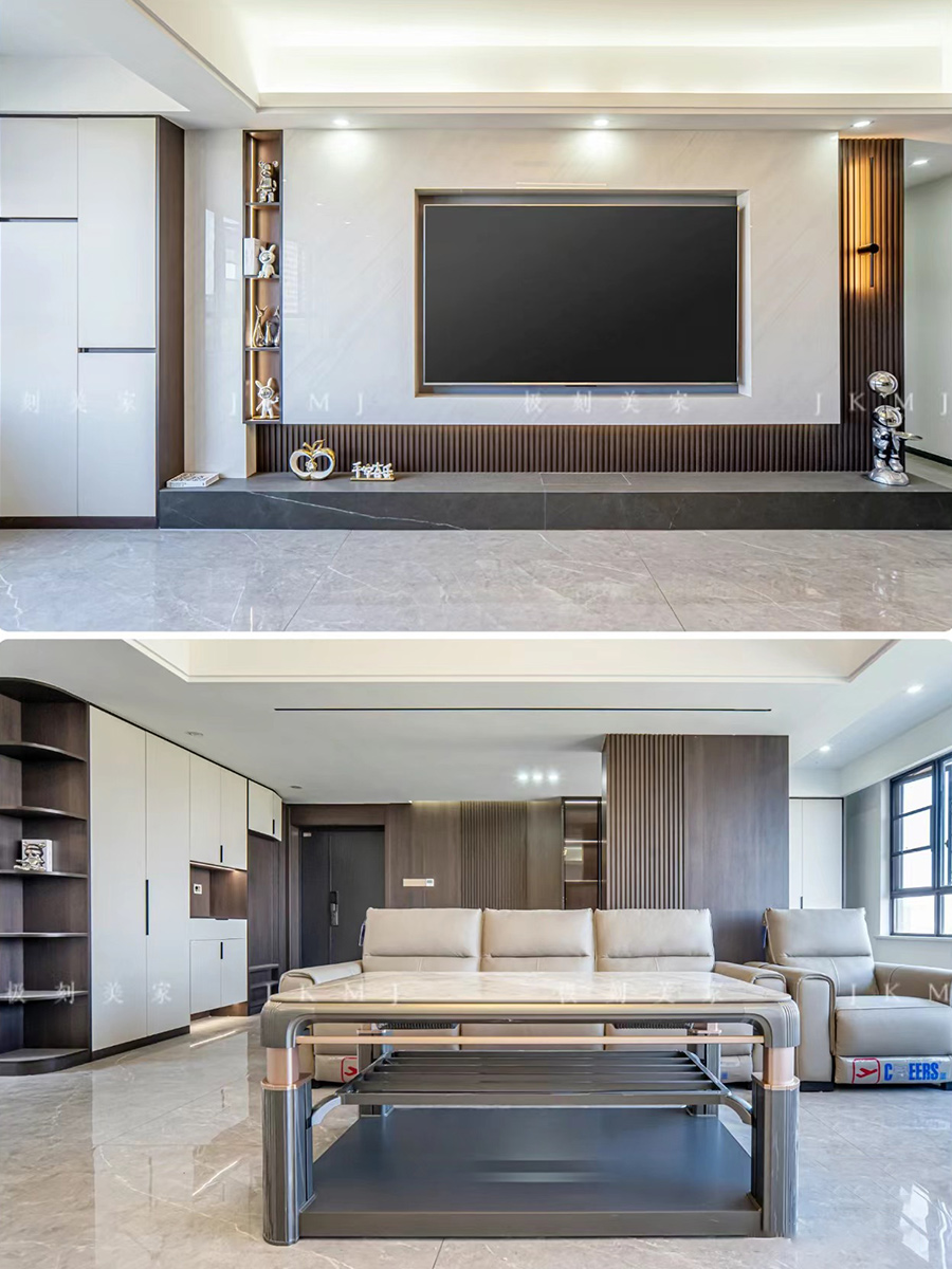 全屋高端定制:柜體板材18厚杉木實(shí)芯板,柜門有pet膚感、高光、超晶、五金使用原裝進(jìn)口奧地利百隆五金