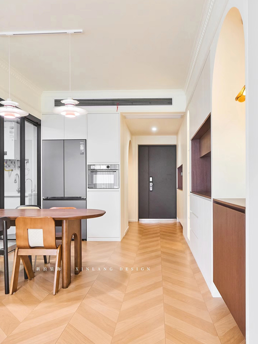 本案結合奶油風格的柔和溫馨與復古風格的經(jīng)典懷舊,打造出一種既現(xiàn)代又充滿故事感的居住空間