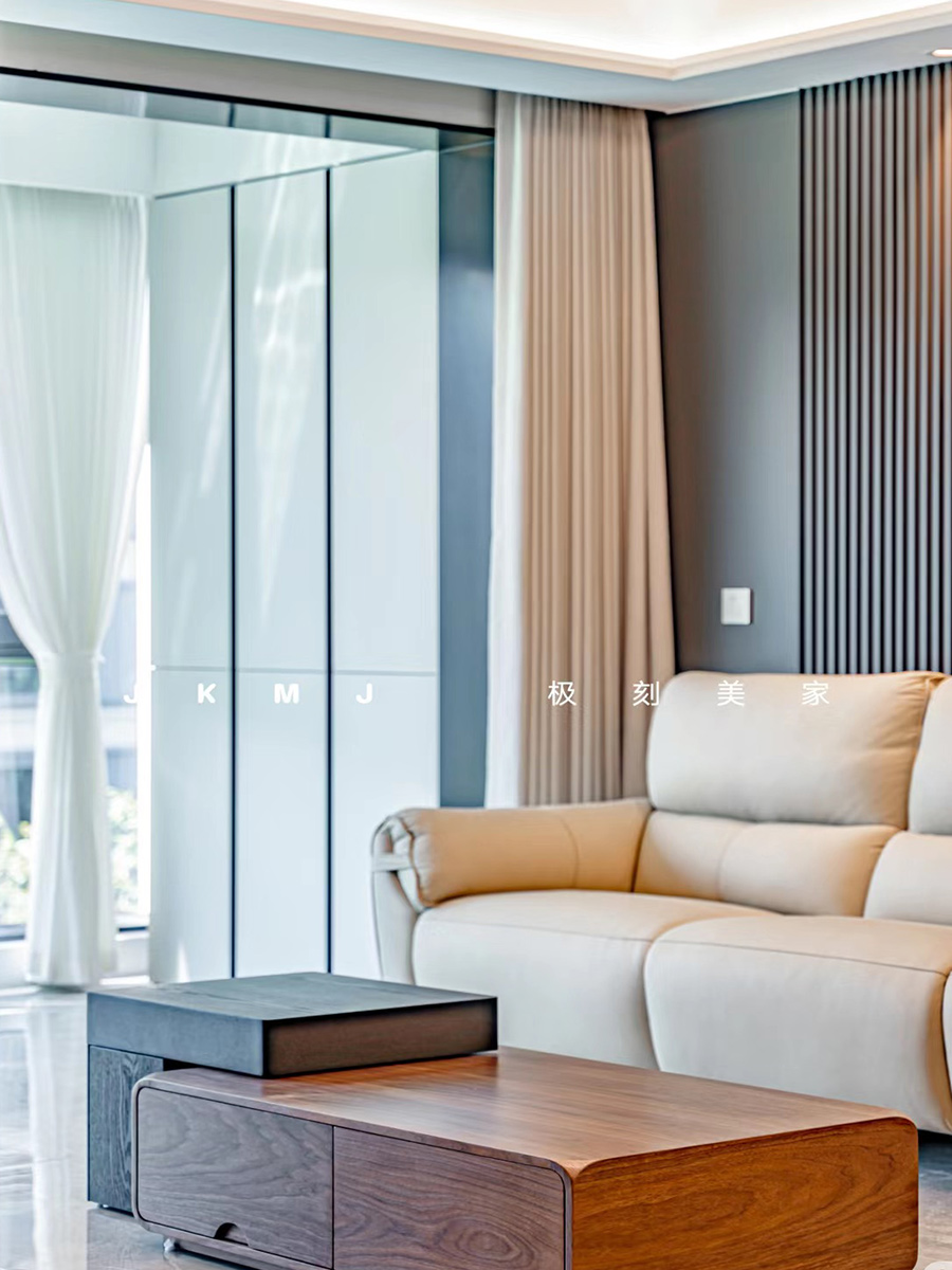 采用濟州灰+象牙灰的顏色搭配,搭配精裝房原本的色系,整體顏色和諧統(tǒng)一