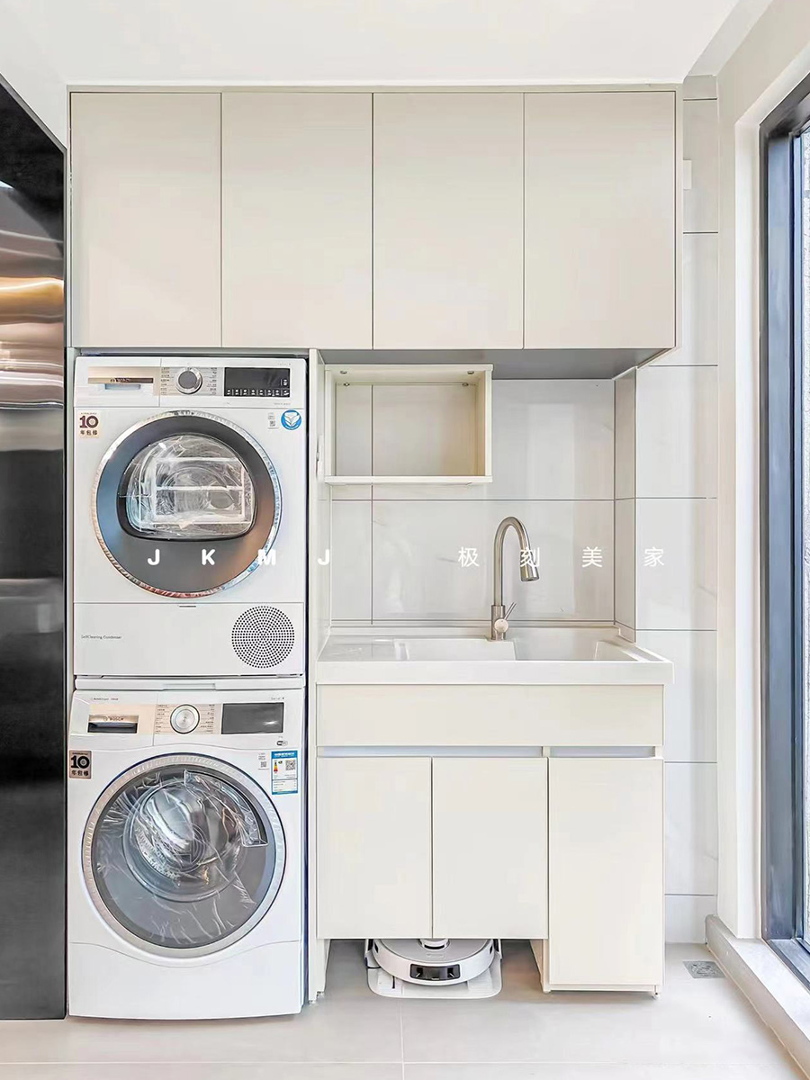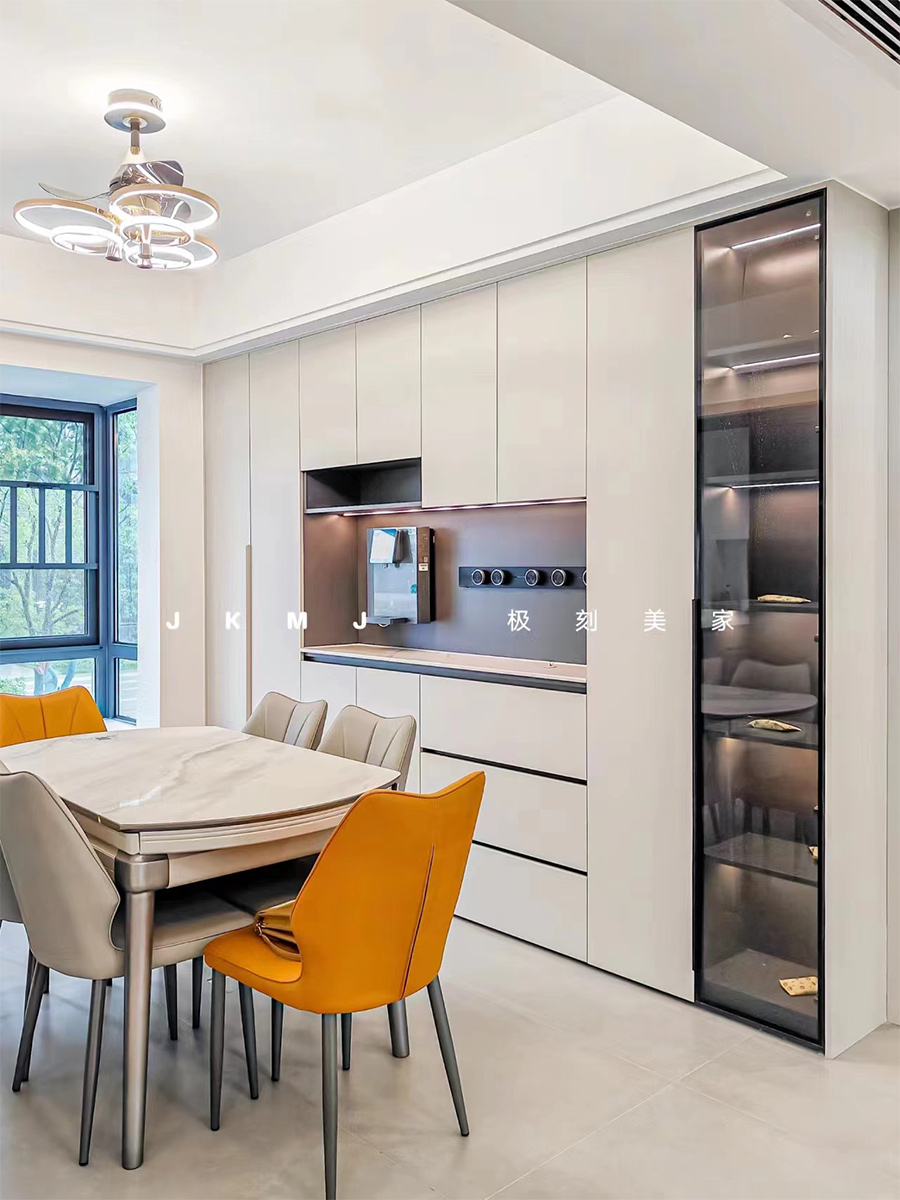 整體色調以現(xiàn)代黑白灰為主,設計簡潔利落,搭配巖板點綴,低調奢華。