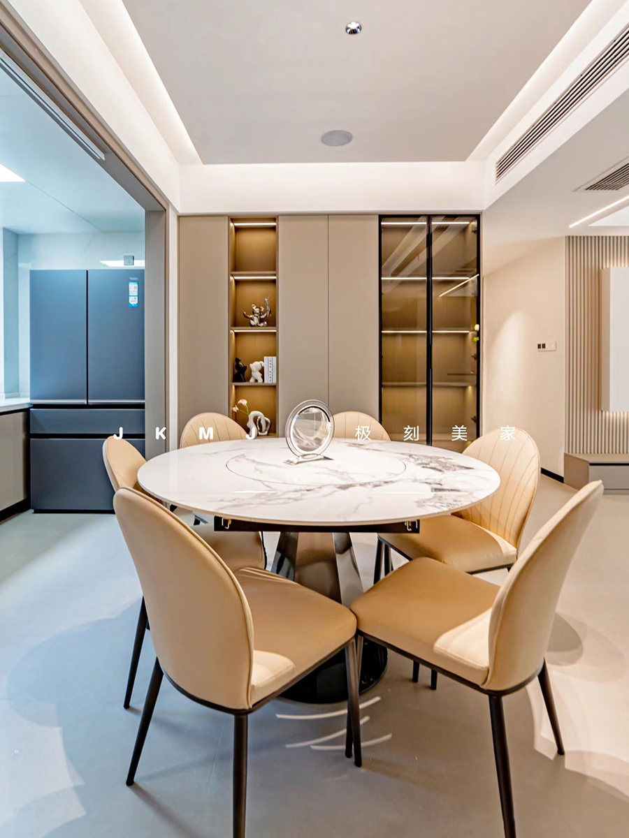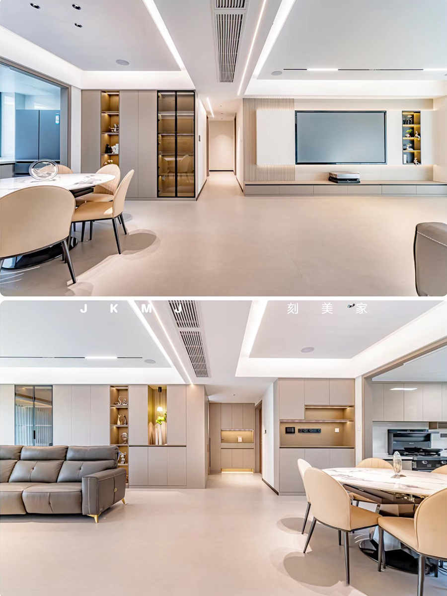 客餐廳懸浮無主燈吊頂,地面柔光大磚,懸浮電視背景墻,視覺效果和諧統(tǒng)一,層次感也超強(qiáng)~