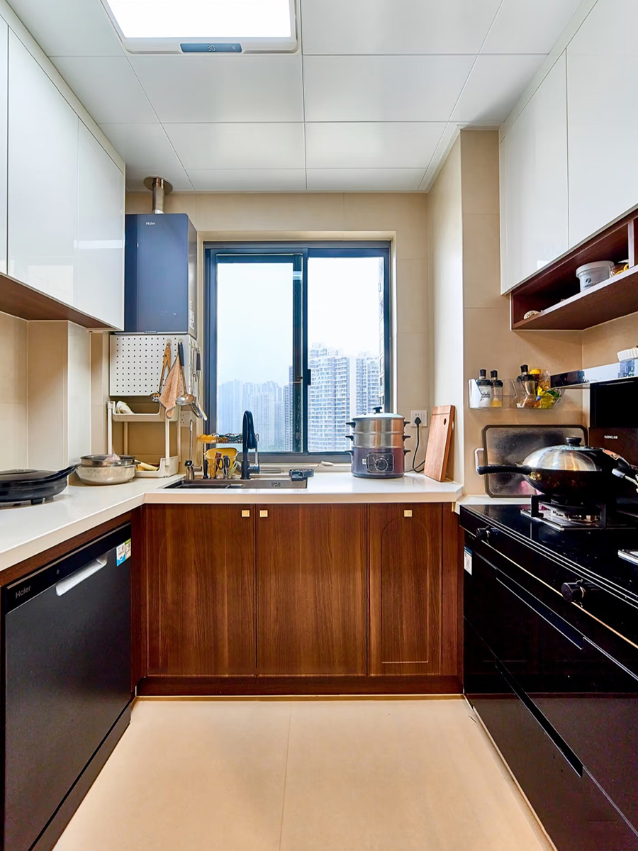 陽臺大膽加入圓弧拱門和廚房黑色玻璃推拉門,更加有復古調(diào)性