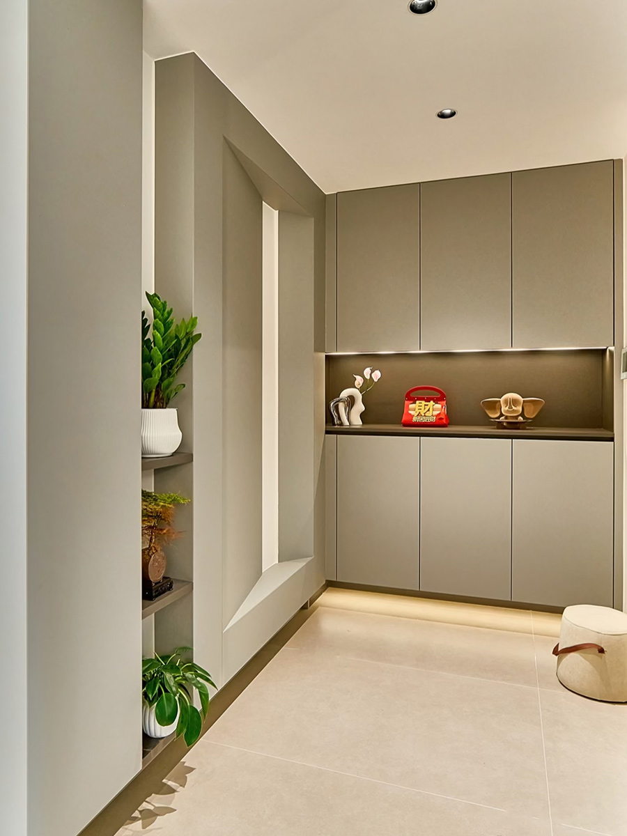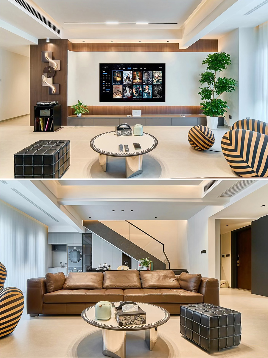 全房無主燈設(shè)計(jì),點(diǎn)光源和線性燈帶提供充足照明,柔和溫馨