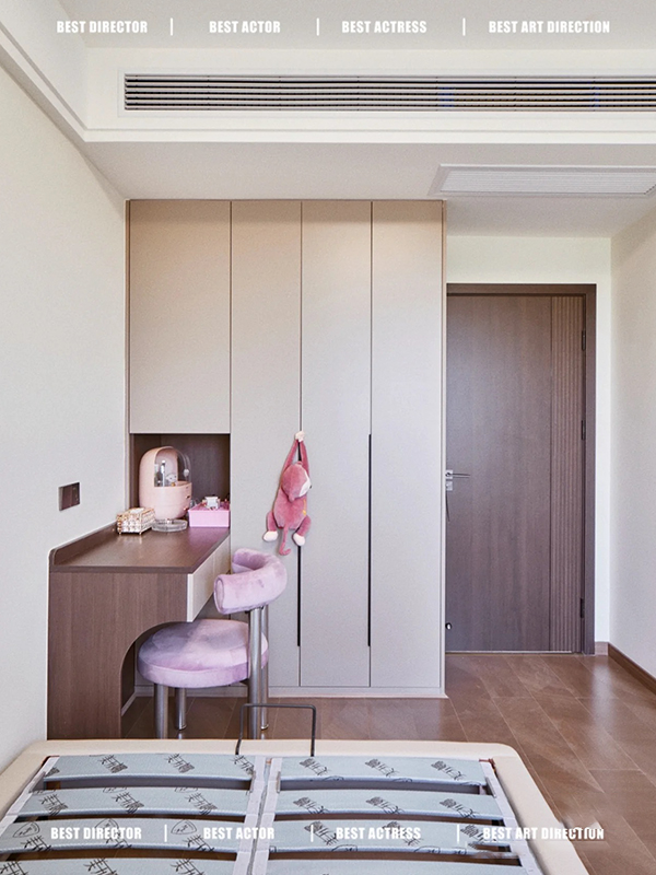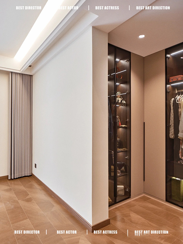 柜門采用奶咖閃銀LSB板PET膚感柜門,一門到頂