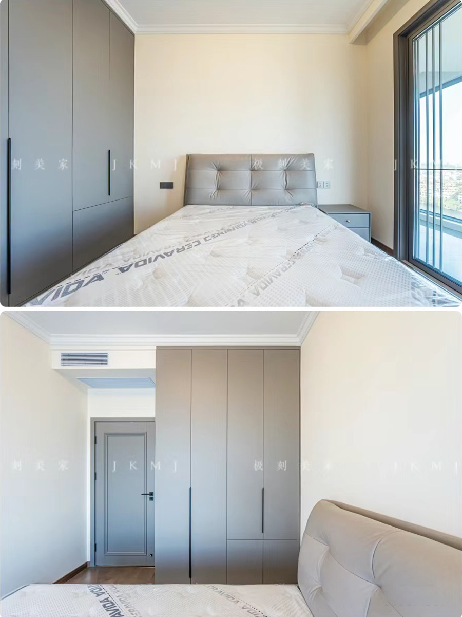主臥延用灰色系,做整墻柜子,滿足你的收納需求