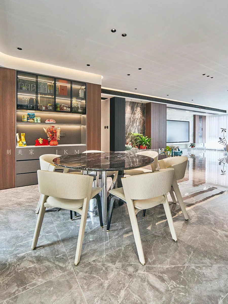沙發(fā)背景和電視背景均采用巖板設(shè)計,簡單又充滿設(shè)計感